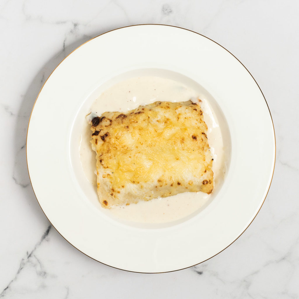 • Pollastre, vedella, porc, pasta de caneló, salsa beixamel, ceba, porro, formatge, mantega, sal